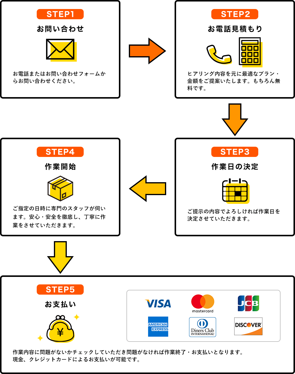 お見積もり後の追加料金も一切御座いません。お客様の状況にあった最適なプランをご提案させて頂きます。